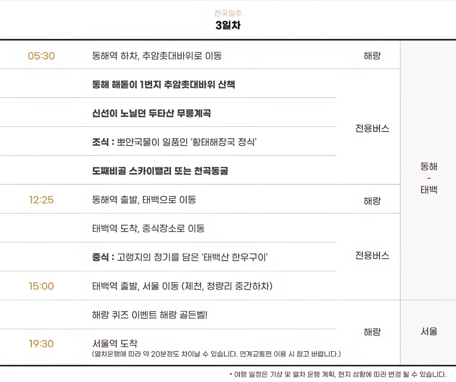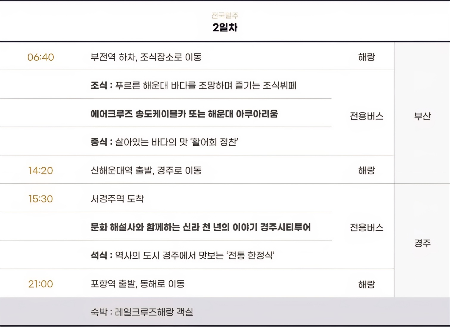 해랑 열차의 가장 큰 특징은 빽빽한 일정표입니다.